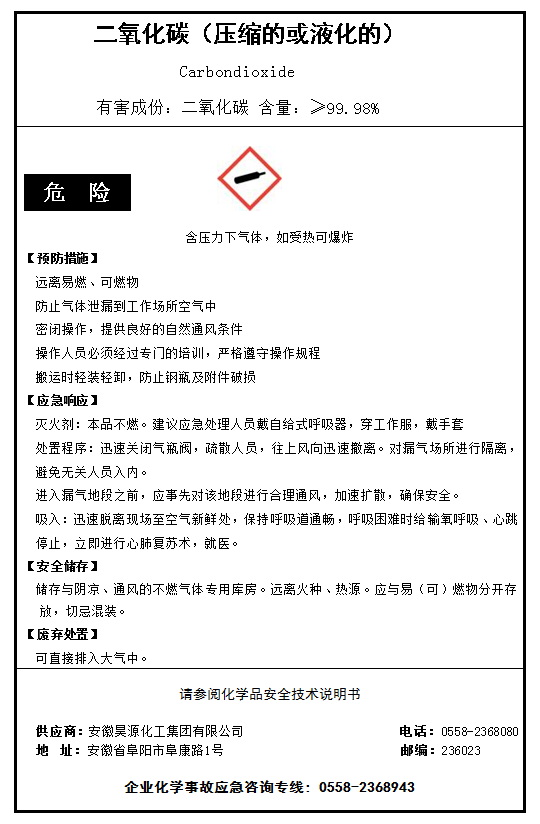 產(chǎn)品名稱:二氧化碳 版本:HY-SDS-2014