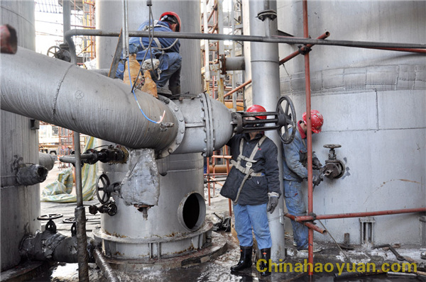 在幾天的檢修過程中,公司各級領(lǐng)導(dǎo)高度重視,公司常務(wù)副總經(jīng)理凡殿才、副總經(jīng)理張海生經(jīng)常到現(xiàn)場指導(dǎo)檢修工作。碳化車間主任郭學(xué)法更是堅守在檢修一線,衣服已經(jīng)看不到原來的顏色,眼里已熬得布滿了血絲。