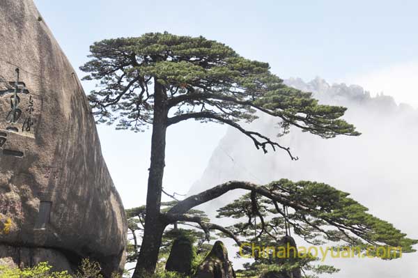 “五岳歸來不看山,黃山歸來不看岳?!秉S山以奇松云海溫泉怪石“四絕”聞名天下,一進入黃山風景區(qū),“奇松”便來迎接我們。只見迎客松枝干有勁,雖然飽經(jīng)風霜,卻仍然郁郁蔥蔥,充滿生機,它有一叢青翠的枝葉斜伸出去,如同好客的主人伸出手臂熱情地迎接旅行者的到來;陪客松則生機勃勃,似乎在陪同游客觀賞美麗的黃山風光;而送客松枝干蟠曲,它向山下伸出長長的手臂,好像在同游人依依不舍地告別,真是太奇妙了!