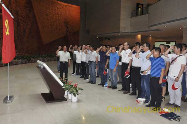 隨后,我們昊源的黨員、干部、積極份子在渡江戰(zhàn)役紀念館活動大廳,面對鮮紅的黨旗,莊嚴宣誓,并重溫了入黨誓詞。