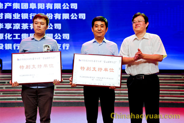 會上,共青團阜陽市委員會、阜陽市希望工程辦公室授于安徽昊源化工集團有限公司阜陽市2018年希望工程“愛心圓夢大學(xué)”特別支持單位,戚偉代表昊源集團領(lǐng)取獎牌。