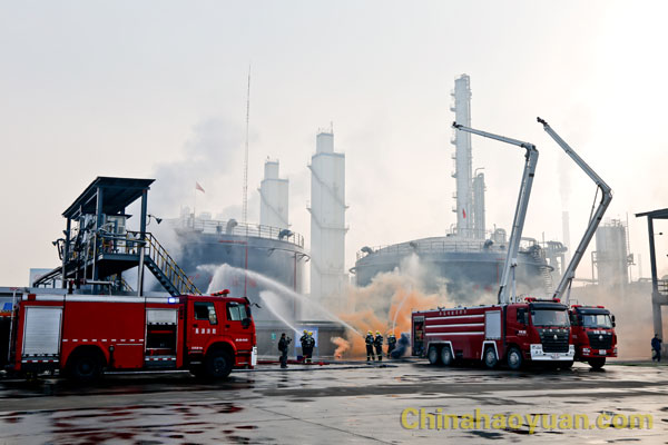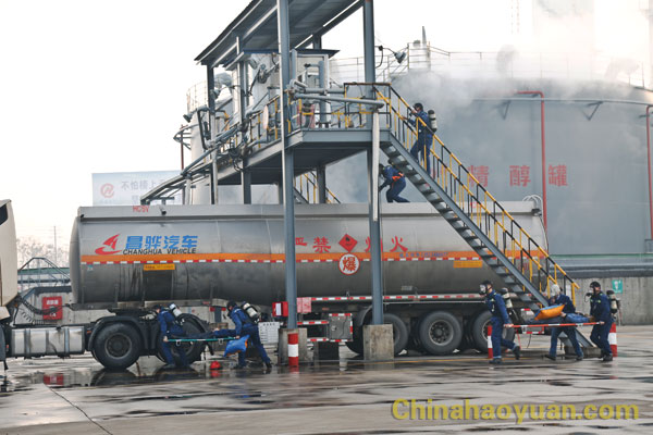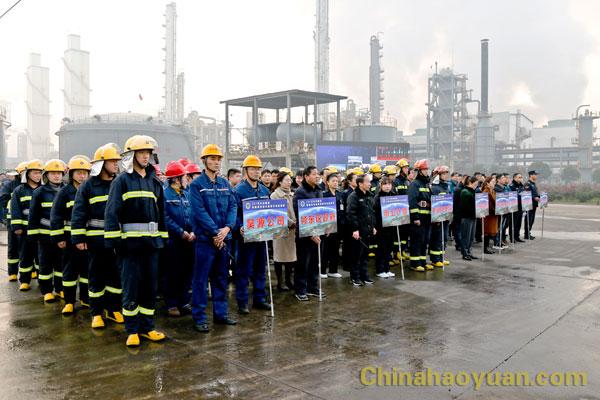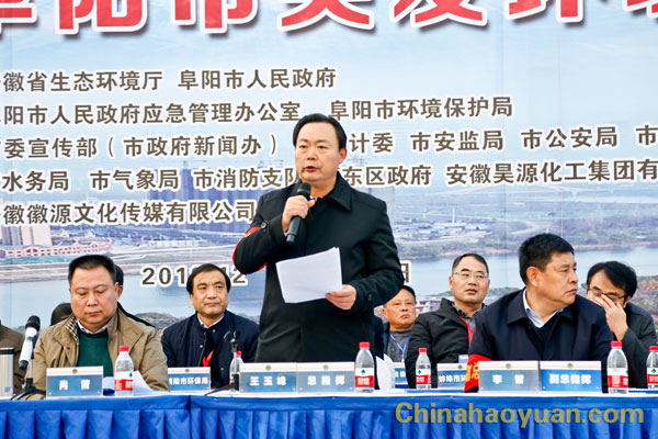 12月20日,2018年安徽省阜陽(yáng)市突發(fā)環(huán)境事件應(yīng)急演練在昊源公司舉行。演練以昊源公司航天爐系統(tǒng)2號(hào)4000立方米甲醇儲(chǔ)罐甲醇充裝連接軟管泄漏、靜電起火,在處置過(guò)程中,甲醇廢水通過(guò)公司雨水管網(wǎng)溢流進(jìn)入駱家溝,并伴有大量甲醇揮發(fā)為假想。阜陽(yáng)市委常委、副市長(zhǎng)王玉峰任演練總指揮。