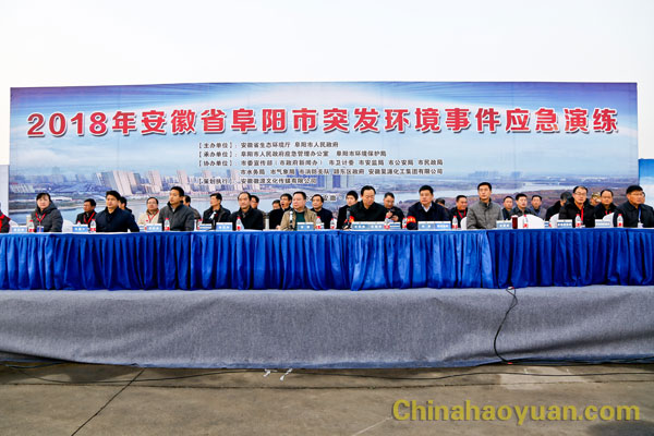 本次演練由安徽省生態(tài)環(huán)境廳、阜陽(yáng)市人民政府主辦,市政府應(yīng)急辦、市環(huán)境保護(hù)局承辦,市委宣傳部、市政府新聞辦、市衛(wèi)計(jì)委、市安監(jiān)局、市公安局、市民政局、市水務(wù)局、市氣象局、阜陽(yáng)消防支隊(duì)、潁東區(qū)政府、昊源化工等協(xié)辦。以上單位相關(guān)領(lǐng)導(dǎo)、安徽省其它縣市環(huán)境負(fù)責(zé)人、昊源化工部分員工現(xiàn)場(chǎng)觀摩演練。