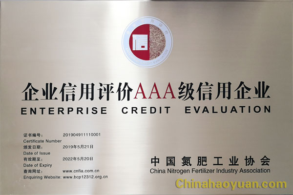 2019年5月20日至5月21日,中國(guó)氮肥工業(yè)協(xié)會(huì)第六屆五次理事會(huì)在安徽合肥召開(kāi),會(huì)上發(fā)布中國(guó)氮肥行業(yè)企業(yè)信用評(píng)價(jià)結(jié)果,安徽昊源化工集團(tuán)有限公司獲得中國(guó)氮肥工業(yè)協(xié)會(huì)企業(yè)信用等級(jí)AAA級(jí)榮譽(yù)稱(chēng)號(hào)。