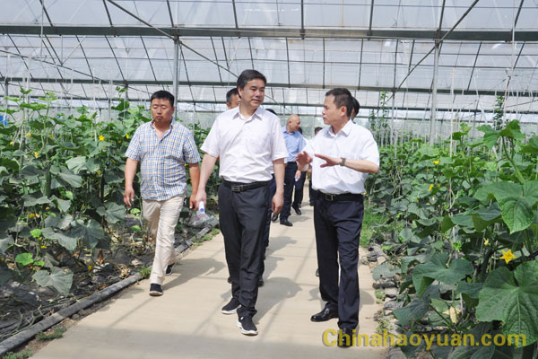 吳照明一行冒著酷暑深入田間地頭,實(shí)地查看了普惠農(nóng)業(yè)公司現(xiàn)代化綠色無公害蔬菜大棚內(nèi)長勢良好的各種瓜果蔬菜。楊捷在大棚內(nèi)現(xiàn)場介紹了普惠農(nóng)業(yè)公司目前種植的蔬菜種類,以及如何應(yīng)用先進(jìn)農(nóng)業(yè)管理方法進(jìn)行蔬菜種植管理過程。參觀人員紛紛表示通過實(shí)地參觀,打消了疑慮,增強(qiáng)了信心,堅(jiān)定了決心。