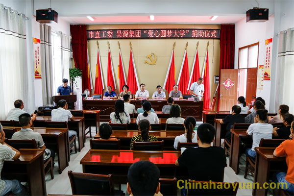 阜陽市直機(jī)關(guān)工委領(lǐng)導(dǎo)李濤、周君、劉振、高爐,昊源公司副總經(jīng)理田懷廣、團(tuán)委書記朱梅,椿樹村委書記沈俊強(qiáng)出席助學(xué)金發(fā)放儀式。