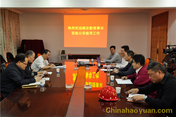 在公司會議室,鄭高潮董事長代表昊源公司歡迎顧宗勤理事長一行蒞臨昊源指導工作。高玉磊向顧宗勤一行介紹了昊源公司目前生產經營情況以及未來發(fā)展規(guī)劃。