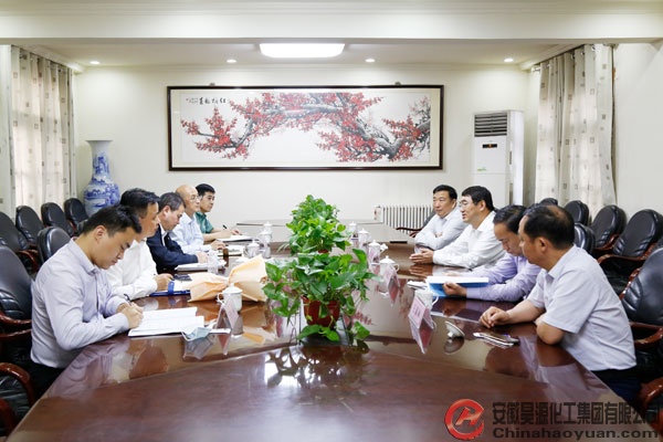 劉玉建一行在會議室與公司領導進行親切座談,詳細了解昊源公司生產(chǎn)經(jīng)營、原料采購、園區(qū)項目建設規(guī)劃、科技創(chuàng)新等方面情況。