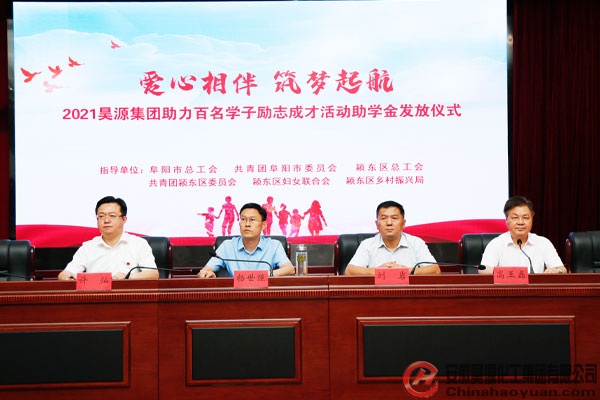 8月27日,“2021年昊源集團助力百名學子勵志成才活動”愛心助學獎學金發(fā)放儀式在潁東區(qū)政府會議室舉行。潁東區(qū)委副書記楊世強,阜陽市總工會副主席劉巖,共青團阜陽市委副書記許燦,安徽昊源化工集團有限公司黨委副書記、副總經理高玉磊出席活動。