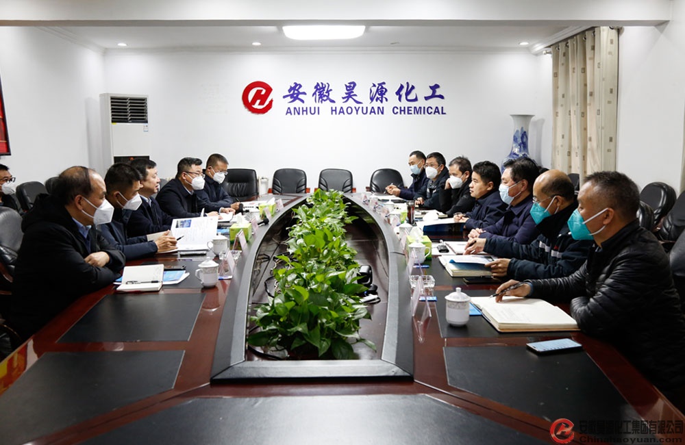 在昊源老廠區(qū)會(huì)議室,凡殿才向申瑞屏一行匯報(bào)了公司生產(chǎn)經(jīng)營、產(chǎn)品產(chǎn)能及發(fā)展規(guī)劃情況。昊源公司積極貫徹新發(fā)展理念,以數(shù)字化、信息化、智能化創(chuàng)新經(jīng)營與管理模式,統(tǒng)籌推進(jìn)企業(yè)綠色低碳高質(zhì)量轉(zhuǎn)型發(fā)展。園區(qū)一期、二期全部項(xiàng)目、三期部分項(xiàng)目已建成運(yùn)行,實(shí)現(xiàn)達(dá)產(chǎn)達(dá)標(biāo)。三期在建項(xiàng)目將于2023年10月全部建成投運(yùn),四期項(xiàng)目也在有序推進(jìn)中。按照穩(wěn)肥擴(kuò)化發(fā)展戰(zhàn)略,四期項(xiàng)目全部建成投運(yùn)后,將進(jìn)一步延伸和優(yōu)化升級產(chǎn)品鏈,提升盈利能力,向高新技術(shù)、高附加值的化工新材料、高端化學(xué)品、精細(xì)化工品方向發(fā)展,提高公司市場競爭力。