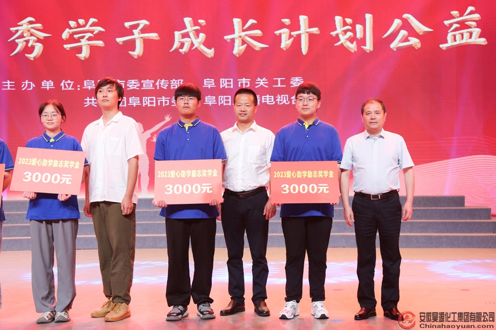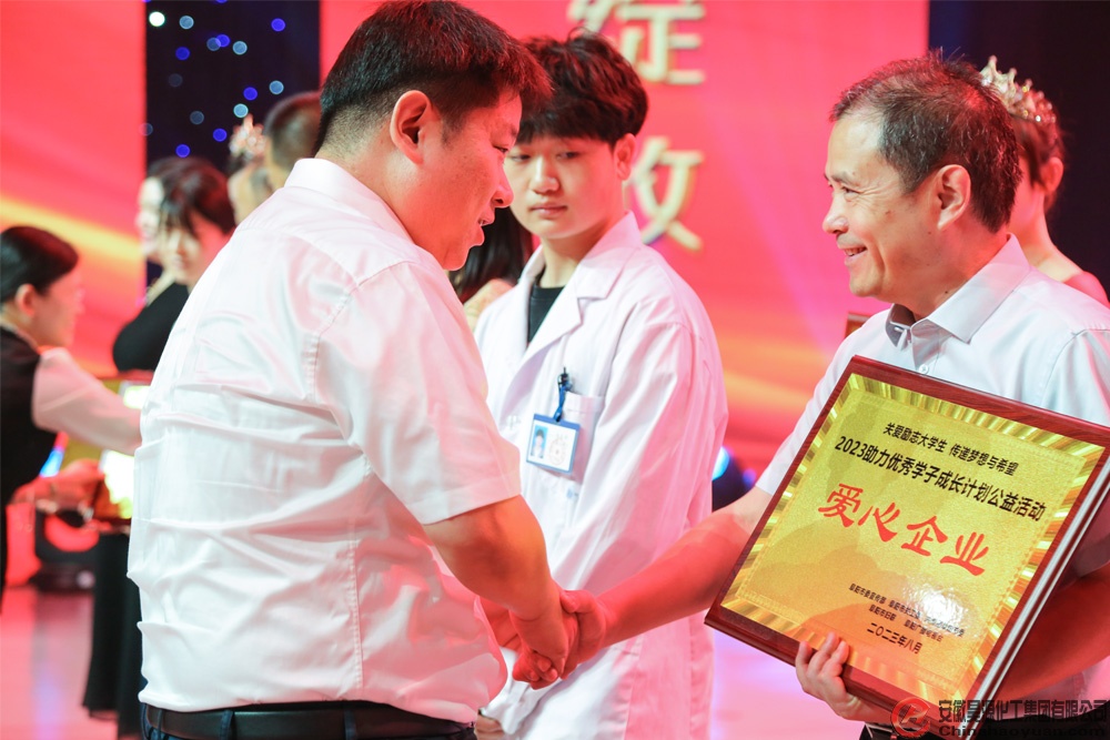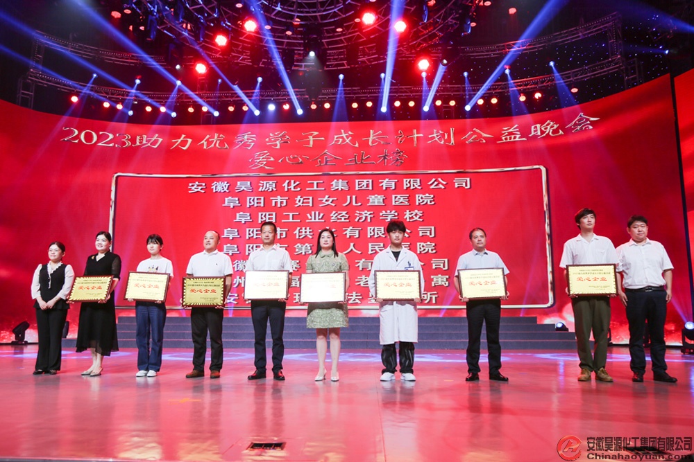 8月13日,由中共阜陽(yáng)市委宣傳部、市關(guān)工委、市民政局、共青團(tuán)阜陽(yáng)市委、市婦聯(lián)、阜陽(yáng)廣播電視臺(tái)共同主辦的“青春逢盛世 奮斗正當(dāng)時(shí),2023助力優(yōu)秀學(xué)子成長(zhǎng)計(jì)劃公益晚會(huì)”,在阜陽(yáng)廣播電視臺(tái)演播大廳舉行。公司黨委副書記、副總經(jīng)理?xiàng)罱荽黻辉醇瘓F(tuán)受邀出席晚會(huì),并為優(yōu)秀學(xué)子頒發(fā)勵(lì)志助學(xué)金。會(huì)上,安徽昊源化工集團(tuán)有限公司被授予“愛心企業(yè)”光榮稱號(hào)。