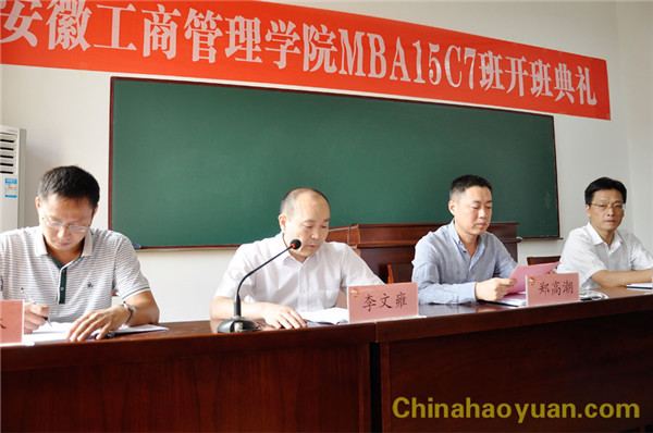 2015年8月31日,昊源集團(tuán)與安徽工商管理學(xué)院聯(lián)合開(kāi)辦的昊源MBA班在阜陽(yáng)師范學(xué)院教學(xué)點(diǎn)舉行隆重開(kāi)班典禮。公司黨委書(shū)記、董事長(zhǎng)鄭高潮、常務(wù)副總經(jīng)理凡殿才,安徽工商管理學(xué)院專(zhuān)職副院長(zhǎng)張昌華、教學(xué)教務(wù)部部長(zhǎng)朱春林、阜陽(yáng)師范學(xué)院副院長(zhǎng)李文雍等領(lǐng)導(dǎo)出席開(kāi)班典禮。