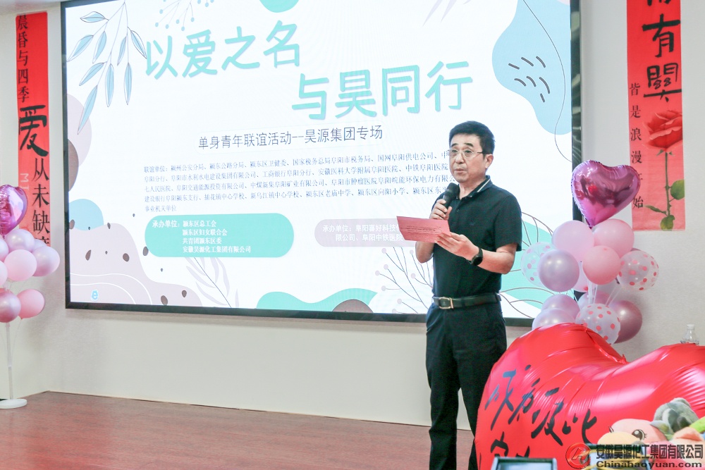 昊源集團工會副主席戚偉在致辭中表示,昊源的快速發(fā)展既得益于每位員工的辛勤付出,又離不開社會各界的大力支持與幫助。通過此次活動為大家創(chuàng)造一個相識相知、發(fā)展友誼、收獲愛情的平臺,希望每位單身青年都能找到自己的幸福。