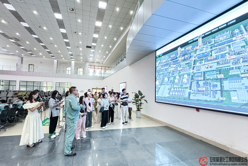 來自阜陽城區(qū)的50多名高校學子,深入昊源園區(qū)生產一線,參觀生產裝置運行情況。
