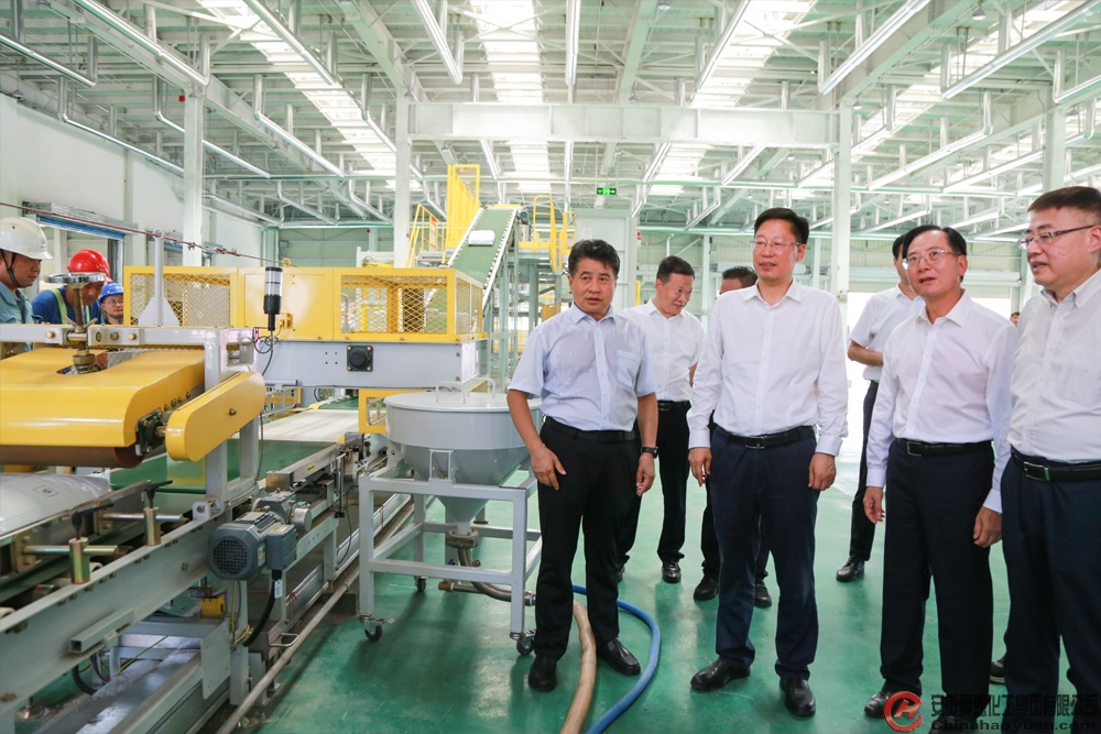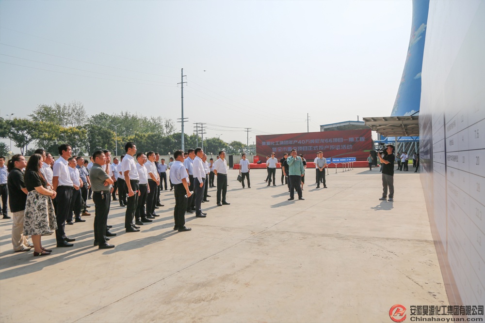 活動期間,劉玉杰、胡明文等領(lǐng)導(dǎo)聽取投產(chǎn)投運(yùn)項(xiàng)目情況介紹后,實(shí)地察看了昊源公司產(chǎn)40萬噸尼龍66項(xiàng)目一期工程生產(chǎn)車間。