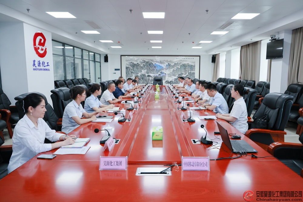 7月14日,中國移動(dòng)阜陽分公司黨委書記、總經(jīng)理梅從軍一行蒞臨昊源公司座談交流,公司黨委書記、董事長凡殿才,副總經(jīng)理張海生、董事會(huì)秘書劉振亞陪同,公司相關(guān)部門負(fù)責(zé)人參加會(huì)議。