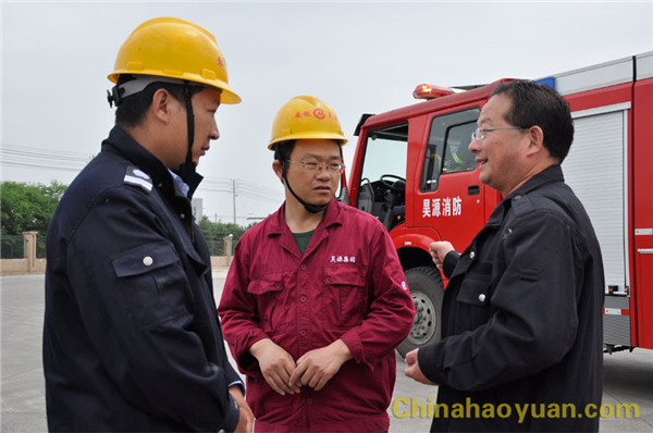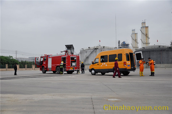 演練由公司安全副總工劉升指揮,保衛(wèi)處處長蔣春生負責(zé)演練協(xié)調(diào)。劉升向消防隊員發(fā)出火災(zāi)救援指令后,不到五分鐘,消防車、氣防車就拉著警笛呼嘯而來,停到著火點的上風(fēng)口。消防隊員一方面查看火情、火勢,一方面組裝消防器具,進行即時救援。很快火勢得到控制,并隨后撲滅。這時早已穿好防化服和配戴好空氣呼吸器的防化人員,立即沖入事故現(xiàn)場,進行仔細排查現(xiàn)場情況、搜救事故現(xiàn)場人員。在反復(fù)排查,確定著火已徹底撲滅,現(xiàn)場無人員傷亡后,防化人員退出事故現(xiàn)場,演練結(jié)束。