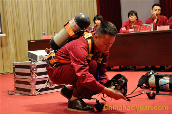 知識競賽設必答題、搶答題、風險題、現(xiàn)場操作四個環(huán)節(jié)。比賽現(xiàn)場氣氛激烈,現(xiàn)場操作空氣呼吸器更是將比賽推向高潮。比賽過程中,還設置了觀眾搶答環(huán)節(jié),臺上臺下互動問答,普及全員安全知識,提高大家安全意識。