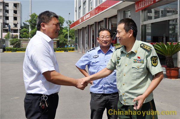 2016年7月30日,昊源公司副總經(jīng)理高明林一行到潁東消防大隊(duì),慰問(wèn)冒著高溫酷暑,堅(jiān)守在工作崗位的消防官兵。