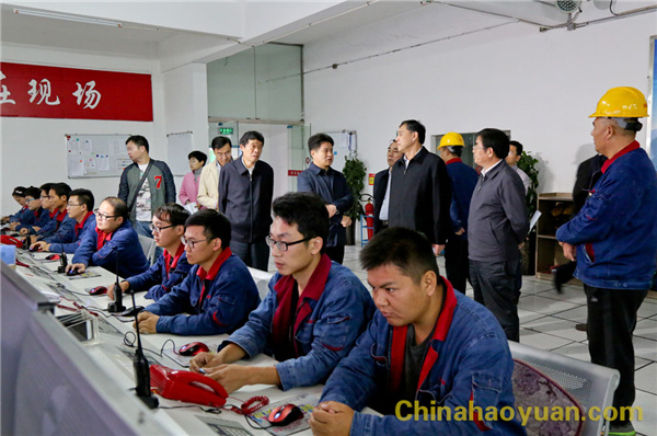 隨后,宋衛(wèi)平一行來到公司污水處理中心,查看污水處理情況。凡殿才一邊將處理后的排放水取樣給宋衛(wèi)平一行觀看,一邊向宋衛(wèi)平一行匯報昊源公司在環(huán)境保護、治理方面所采取的積極措施。他說,昊源公司多年來,一直逐年加大環(huán)境保護、治理資金投入,先后實施了污水處理、揚塵抑制、脫硫、脫硝、噪音控制、在線實時監(jiān)控等裝置,對改善廠區(qū)及周邊環(huán)境,取得了明顯效果。