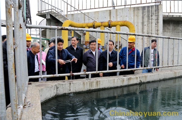 宋衛(wèi)平一行在污水處理站查看污水處理情況