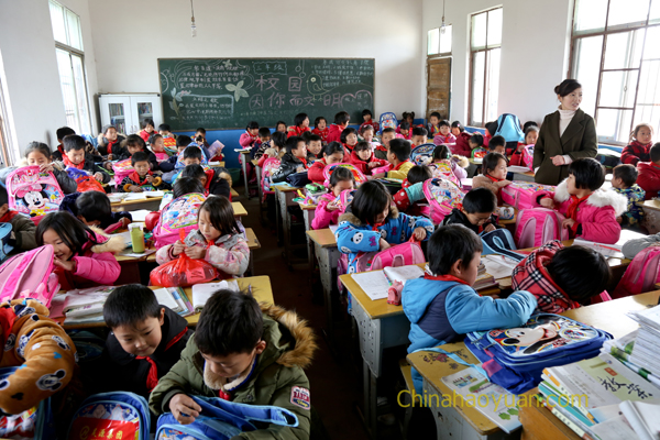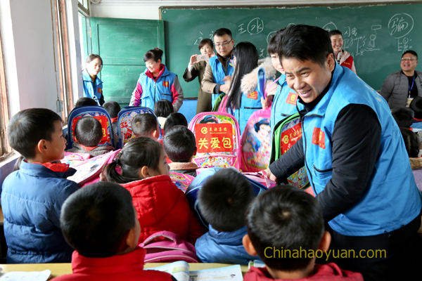 阜陽是農(nóng)業(yè)大市,常年外出務(wù)工農(nóng)民超過300萬。12月3日,在集團公司董事長總經(jīng)理凡殿才的帶領(lǐng)下, 昊源集團青年志愿者們驅(qū)車一個多小時,來到臨泉呂寨陳小寨村小學(xué)!一進學(xué)校就感覺到了濃濃的校園氣息,一大群活潑可愛的小朋友們在小操場上打打鬧鬧,有跳繩,做操,跑步!昊源集團青年志愿者服務(wù)隊為孩子們送去冬日暖陽,讓需要關(guān)愛和陪伴的留守兒童感受到全社會的愛心和溫暖。凡殿才親手將關(guān)愛書包發(fā)放到每個孩子的手中,并囑咐他們父母雖然不在身邊,但是關(guān)心愛護他們的人卻有很多。