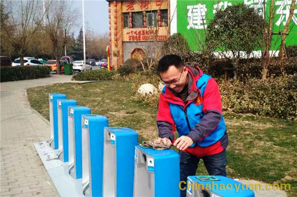 更不能不提的是"小綠"了,對(duì)給予我們方便的小綠自行車,志愿者們格外的照顧,讓小綠們干凈美麗得仿如剛剛現(xiàn)身在阜城之中。