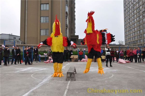 “雞”祥如意項(xiàng)目讓人難忘。幾位穿有提前精心準(zhǔn)備的卡通雞服裝的員工,隨著《雞叫進(jìn)行曲》的節(jié)奏翩翩起舞,時而拍拍雞翅膀、時而扭扭屁股,給觀眾們帶來趣味運(yùn)動歡樂,贏得了在場觀眾一陣陣熱烈的掌聲和喝彩。考驗(yàn)團(tuán)隊(duì)精神的夾氣球跑項(xiàng)目,需要每組六人相互協(xié)作,每個人雙手舉過頭頂,把氣球夾在胸前一起向前跑。多組隊(duì)員并排在起跑線上,裁判喊“開始”時,隊(duì)員相互配合向前跑,最先到達(dá)終點(diǎn)的隊(duì)獲勝,一個氣球掉落下來則全隊(duì)重新開始。該比賽中每隊(duì)的隊(duì)員都心連心、肩并肩,齊心協(xié)作到達(dá)終點(diǎn),正是對團(tuán)隊(duì)協(xié)作的最好詮釋。同時,在各項(xiàng)比賽間隙,都設(shè)有企業(yè)文化知識問答環(huán)節(jié),員工們在娛樂的同時,又鞏固了企業(yè)文化知識。