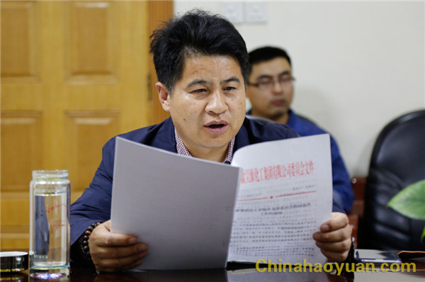 公司黨委副書(shū)記楊捷宣讀《昊源集團(tuán)關(guān)于開(kāi)展黨支部委員會(huì)換屆選舉工作的通知》