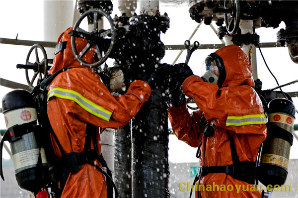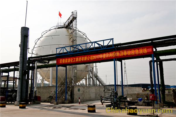 公司安全副總工、安全科科長、演練總指揮劉升向副總經(jīng)理張海生匯報:“演練準備完畢,請領導指示。”“演練開始!”隨著張海生副總經(jīng)理一聲令下,異丙胺操作工巡檢至罐區(qū)時,發(fā)現(xiàn)異丙胺球罐底部的輸送物料管道連接法蘭突然泄漏,該巡檢人員中毒、灼傷倒地。崗位操作人員通過現(xiàn)場視頻監(jiān)控,發(fā)現(xiàn)這一情況,立即向生產(chǎn)調(diào)度及車間管理人員匯報。公司啟動應急預案,根據(jù)危險化學品泄漏事故專項應急預案進行現(xiàn)場人員施救,并對異丙胺洗消及泄漏點堵漏處理。保衛(wèi)科消防人員通過高壓水槍壓制及稀釋泄漏的異丙胺,動力處組織維修人員進入泄漏現(xiàn)場開始堵漏。同時,環(huán)??平M織技術人員封堵地溝,防止地溝內(nèi)的異丙胺外流,并對現(xiàn)場大氣質(zhì)量及地溝內(nèi)水質(zhì)進行反復分析。待泄漏消除,現(xiàn)場大氣及水的質(zhì)量合格,演練結(jié)束。