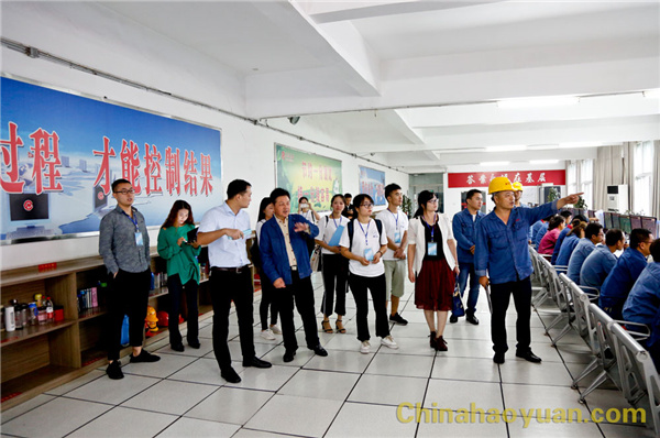 在會議室,高玉磊向“安徽大學(xué)博士團(tuán)”介紹了企業(yè)科技創(chuàng)新、人才隊(duì)伍建設(shè)、節(jié)能減排、安全生產(chǎn)、綠色環(huán)保及企業(yè)轉(zhuǎn)型升級等情況,就本次調(diào)研課題進(jìn)行深入交流。