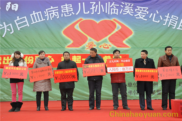 據(jù)悉,潁州區(qū)委黨校教師呂超穎5歲兒子孫臨溪不幸患上白血病,前期治療2年半,已花費近60萬元。孩子目前病情有所加重,正在天津血液病??漆t(yī)院治療,急需造血干細(xì)胞移植手術(shù),但是這個家庭已經(jīng)債臺高筑,雖經(jīng)本人及單位多方籌措,仍然無力籌到干細(xì)胞移植所需數(shù)十萬元費用,孩子治療陷入困境,生命隨時面臨危險。公司領(lǐng)導(dǎo)得知此事后,迅速派出工會人員到捐助活動現(xiàn)場捐出10000元現(xiàn)金表達(dá)愛心,愿凝聚集體的愛心,為孩子再造生命的綠洲!