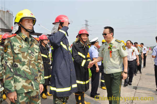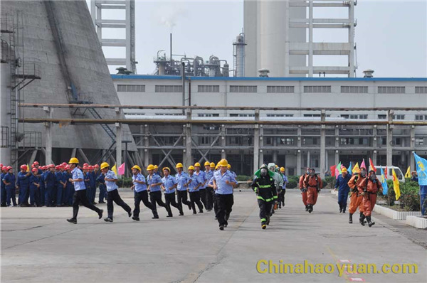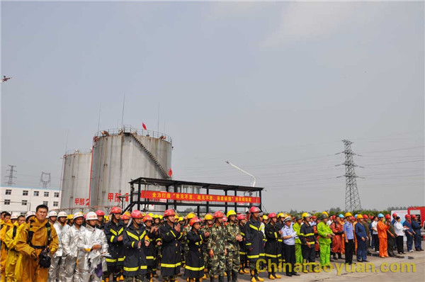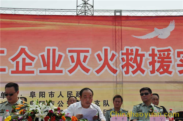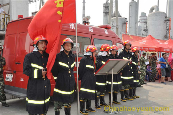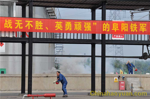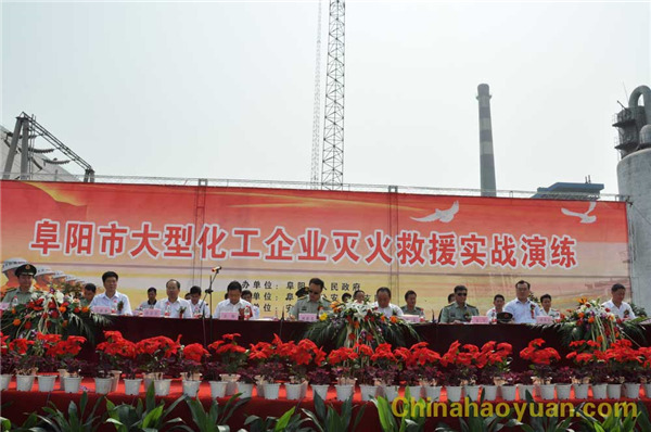 7月21日,由阜陽(yáng)市人民政府主辦,武警阜陽(yáng)市消防支隊(duì)承辦,安徽昊源化工集團(tuán)有限公司協(xié)辦的2011年阜陽(yáng)市大型化工企業(yè)滅火救援實(shí)戰(zhàn)演練在我公司1號(hào)甲醇罐區(qū)隆重上演。