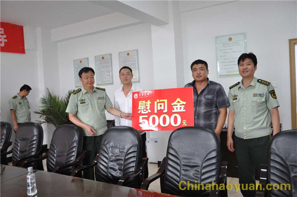 8月1 日,在建軍84周年之際,公司董事長(zhǎng)、總經(jīng)理鄭高潮,總經(jīng)理助理高明林等一行來(lái)到阜陽(yáng)市消防支隊(duì),代表昊源集團(tuán),看望消防官兵,向他們致以節(jié)日的問(wèn)候。并送去慰問(wèn)金5000元和面粉2噸。