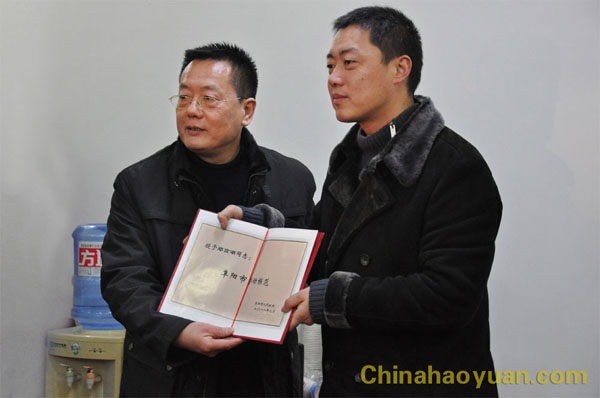 1月4日,阜陽市總工會副主席馬躍進、經(jīng)濟部部長楊建才一行受市委、市政府的委托,來公司為黨委書記、董事長鄭高潮頒發(fā)市2011年度勞動模范榮譽證書,表達黨和政府對勞動模范的關懷,并為公司全體員工帶來了新春祝福。