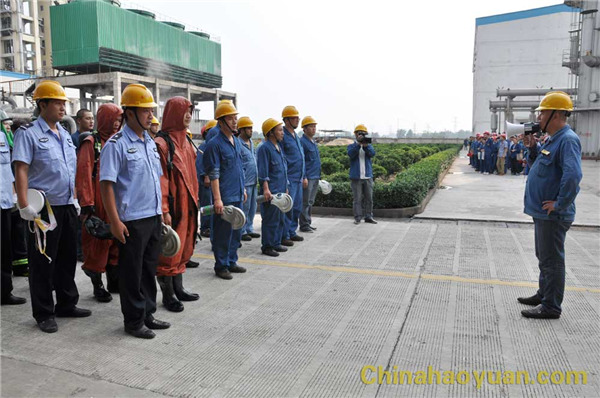 此次演練得到市安監(jiān)局的大力支持。市安監(jiān)局局長李哲、副局長汪金城在公司副總經(jīng)理凡殿才的陪同下,蒞臨現(xiàn)場觀摩、指導(dǎo)反事故應(yīng)急救援演練。此次反事故應(yīng)急救援演練方案為2米合成高壓氣體泄漏。