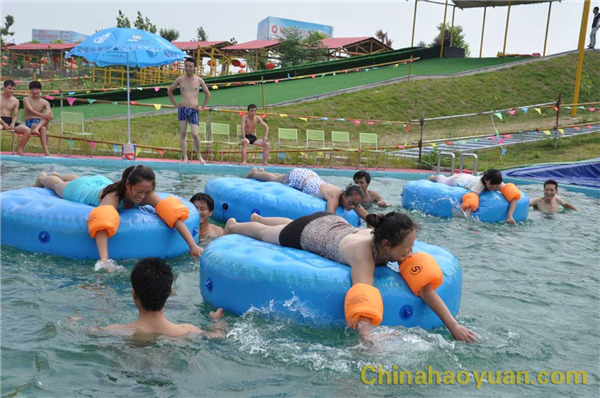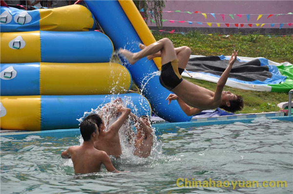 來自生產各團支部的七十多名青年歡聚在一起,盡情地享受盛夏中的清涼水世界。此次活動,精彩紛呈、別開生面。“大珠小珠落玉盤”游戲聽起來是那么的詩意濃濃,要求在一定的時間內,用游泳的方式把水面上的兵乓球夾到指定的盤子內,不僅對選手們的速度提出了要求,更對技巧提出了挑戰(zhàn),大家個個爭先恐后、使出渾身解數;“水上風火輪”游戲要求選手們要有較好的身體平衡能力和動作協(xié)調力;“無敵水上漂”游戲使女選手們真切地過了一把 水上“飄”的癮。比賽之余,青年朋友們有的悠閑地劃著小皮船;有的打起了水仗;更有大膽的青年朋友玩起了水上特技。吶喊聲、嬉笑聲,水面上到處洋溢著歡樂的笑臉。