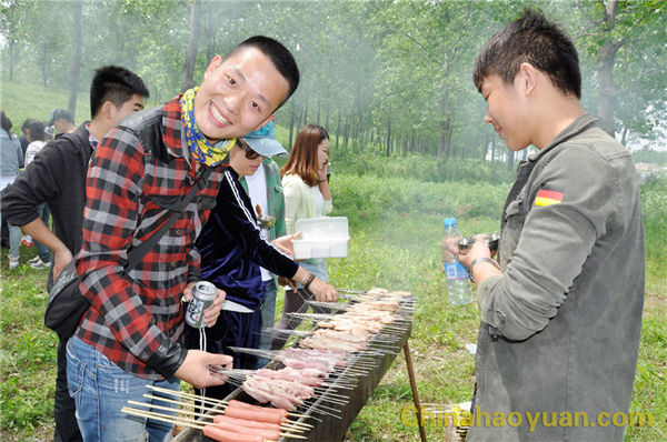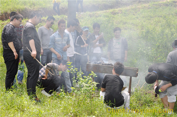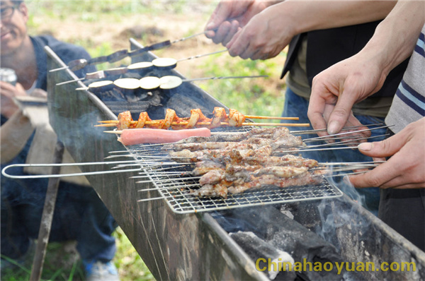 稍作休息,大家便開始了此次燒烤活動(dòng)的準(zhǔn)備工作,拾柴火、生爐子、串肉串,一片熱火朝天的忙碌景象。