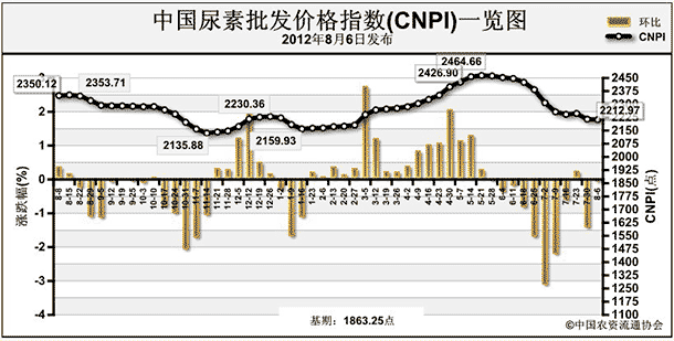 上周(7月30日-8月3日)國(guó)內(nèi)尿素市場(chǎng)需求疲軟,價(jià)格繼續(xù)下滑。8月3日CNPI為2212.97點(diǎn),環(huán)比下跌2.25點(diǎn),跌幅為0.10%;同比下跌137.15點(diǎn),跌幅為5.84%;比基期上漲349.72點(diǎn),漲幅為18.77%。CNPI繼續(xù)保持下滑態(tài)勢(shì)運(yùn)行。