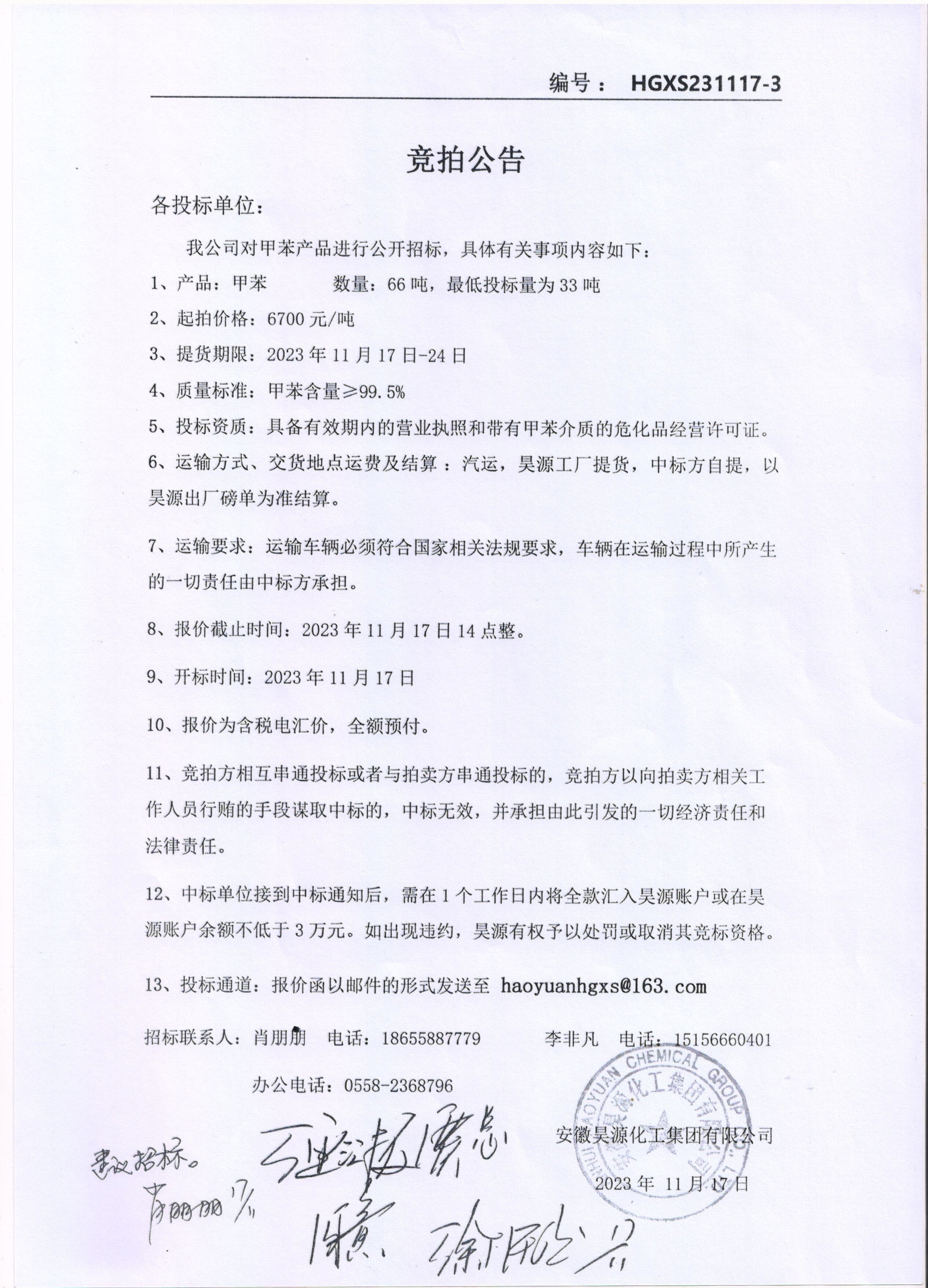 上一條:化工銷(xiāo)售公司粗甲醇競(jìng)拍公告下一條:化工銷(xiāo)售公司碳酸二甲酯競(jìng)拍公告