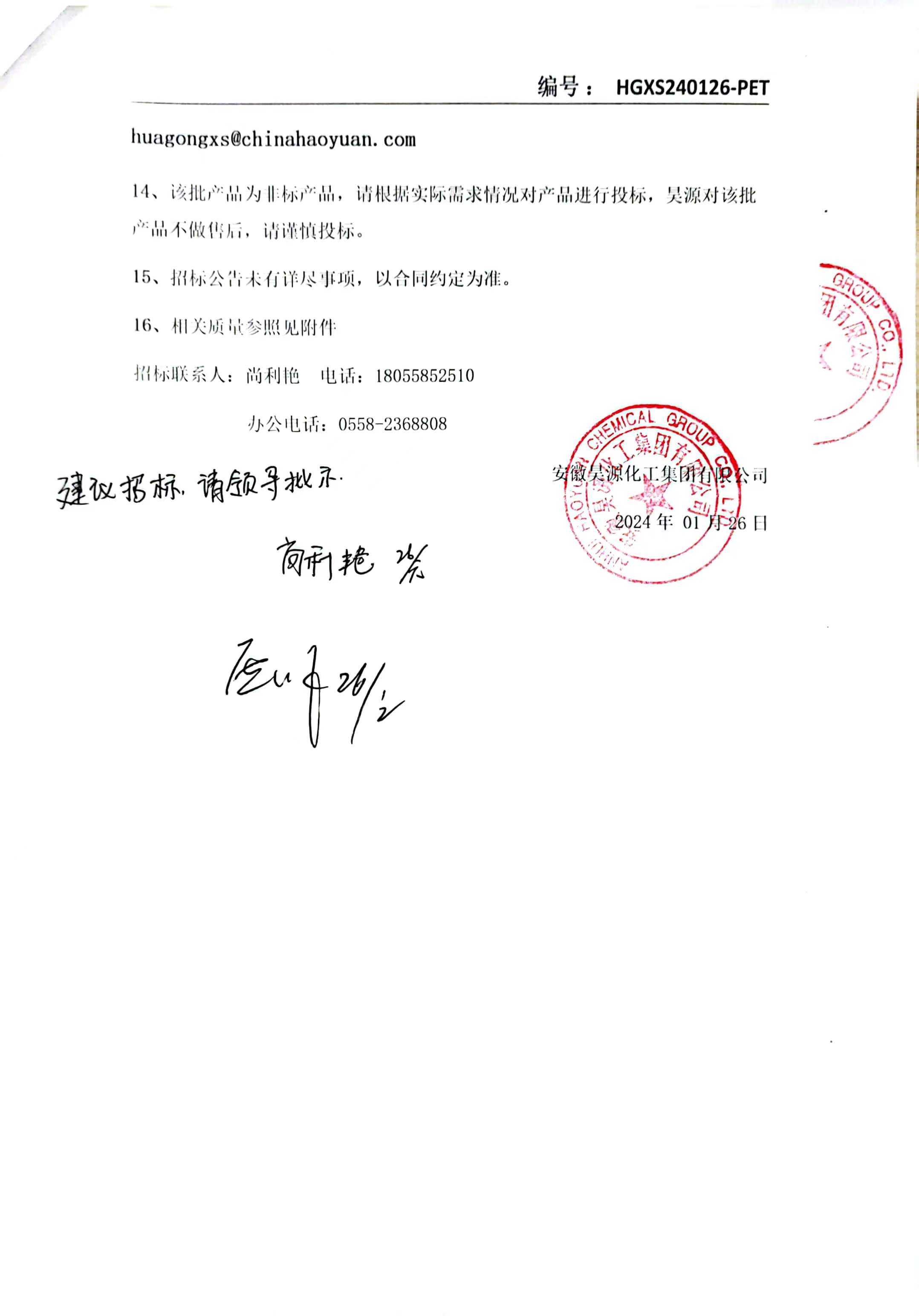 化工銷(xiāo)售聚酯切片過(guò)渡料招標(biāo)公示