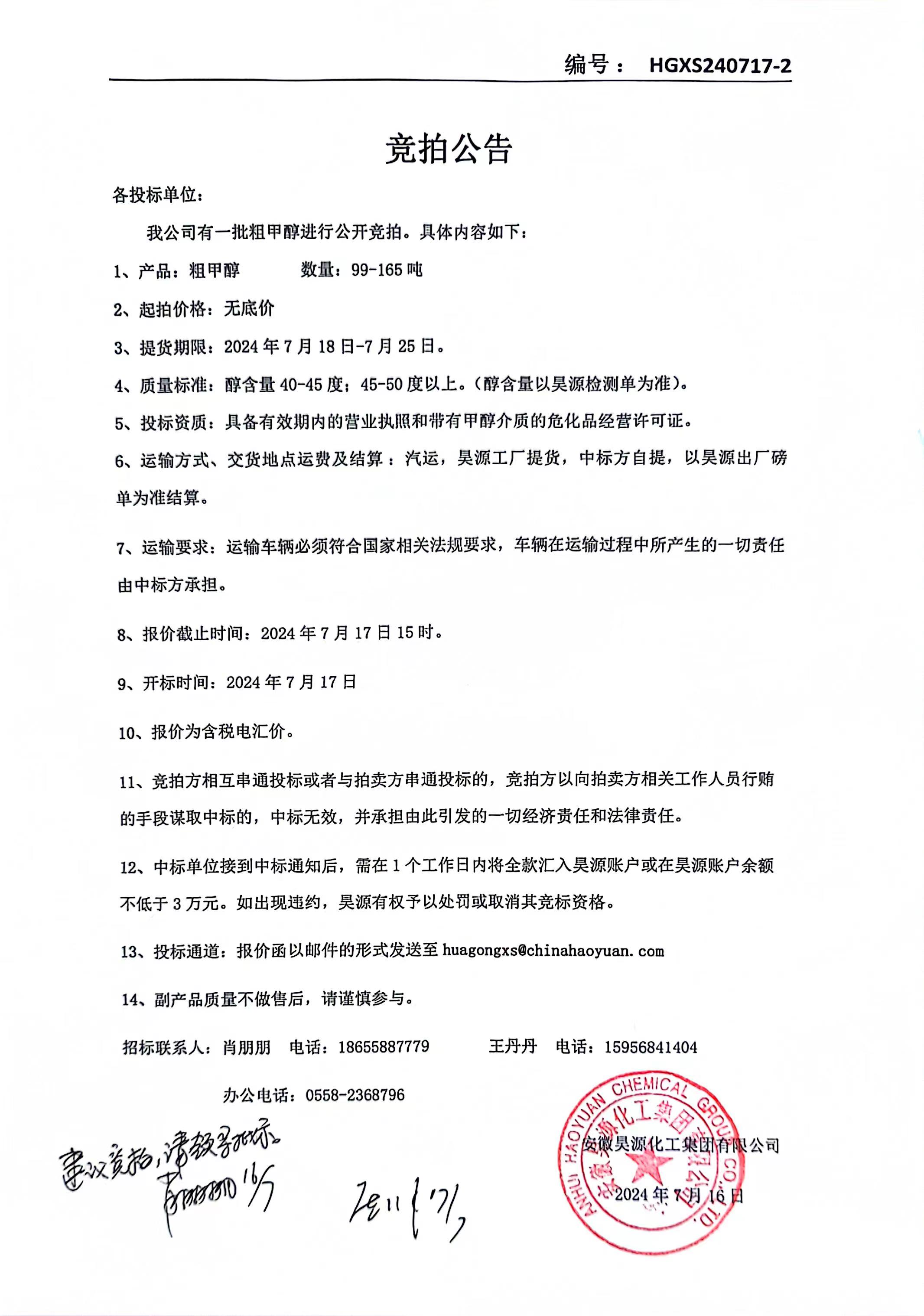 上一條:化工銷售甲苯招標(biāo)公告下一條:化工銷售公司粗甲醇招標(biāo)公告